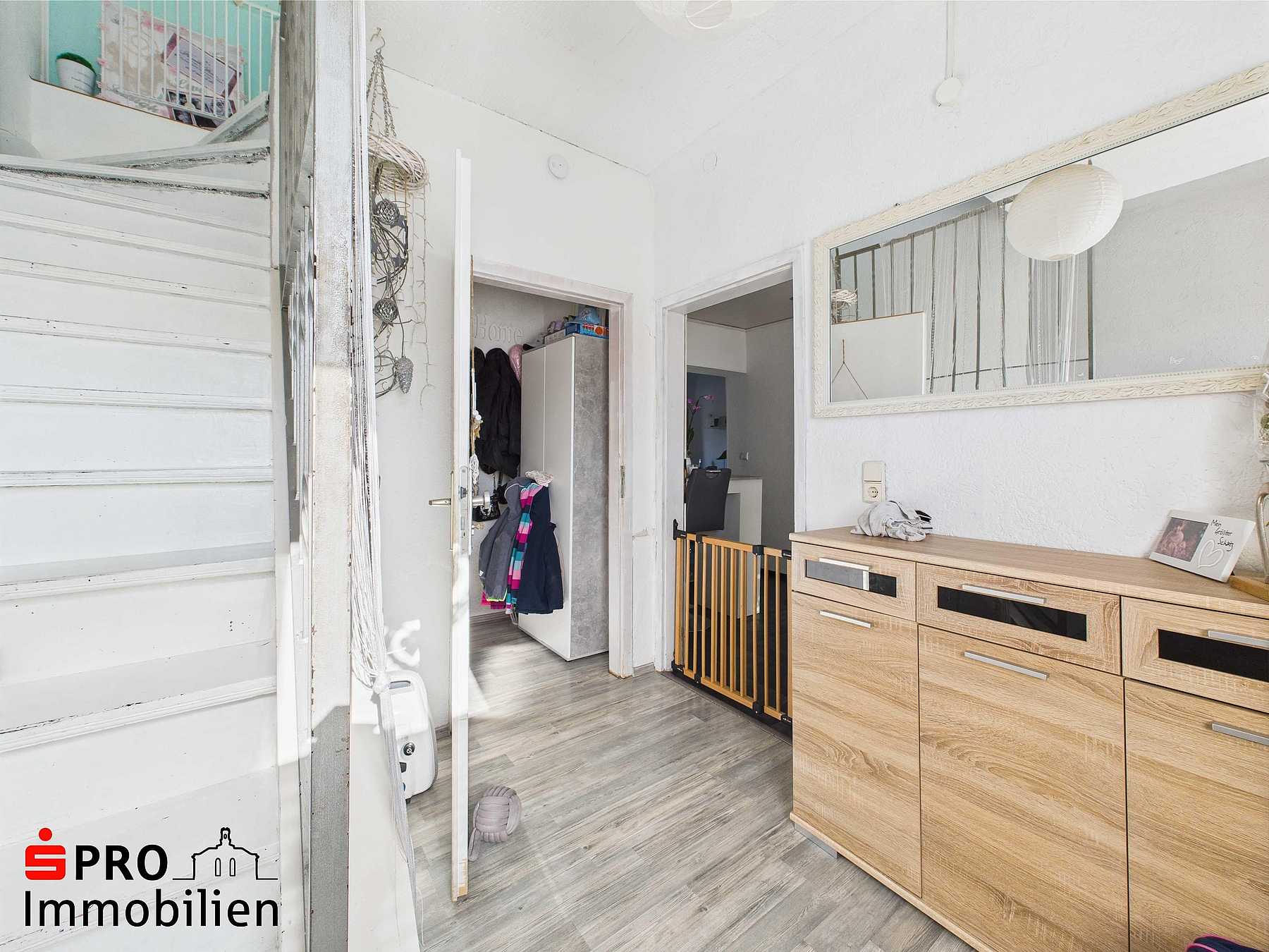Individuelle Ausstattungsmerkmale: - Rollläden manuell - Stellplatz Modernisierter Wohnkomfort in zentraler Lage – ohne Garten, aber mit vielen Vorteilen. Dieses gepflegte Haus eignet sich ideal für alle, die die zentrale Lage schätzen und keinen Wert auf Gartenflächen legen. Die Immobilie wurde umfassend modernisiert: - die Bäder wurden kürzlich erneuert, - die Elektrik ist auf dem neuesten Stand, - auch der Keller wurde saniert. Zwei separate Wohneinheiten bieten flexible Nutzungsmöglichkeiten – ob als Mehrgenerationenhaus, zum Vermieten oder für Wohnen und Arbeiten unter einem Dach. Beide Wohnungen verfügen über eigene Stromzähler. Besonderes Highlight: ein wohnlich ausgebauter Partykeller neben Waschküche und Lagerraum. Vor dem Haus befinden sich zwei neu angelegte Stellplätze. Bitte beachten: Ein Wegerecht des Nachbarn über die rückwärtige Grundstücksfläche ist vorhanden.